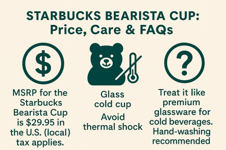 Quick recap: MSRP is wallet-friendly for a hero item, availability is in-store and varies by location, purchase limits may apply, and care is simple for cold beverage glassware. For official updates, Starbucks consolidates news in the Newsroom. For day-of context and practical tips, see CBS News and ABC7, while People captures the early resale and frenzy snapshot.